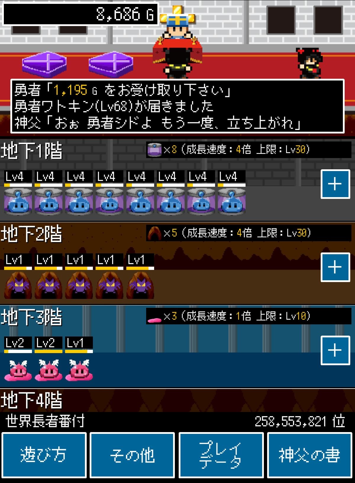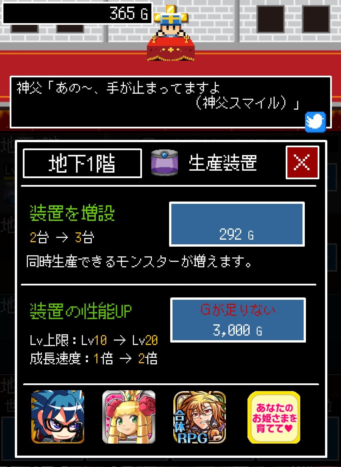 添購生產機跟強化生產機是很重要的!當生產機性能越高,魔物的等級就可以更高,如此一來就能到打倒更強的勇者了