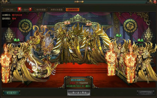 風雲》龍城爭霸戰將以連服的形式展開,每個連服由 3 個伺服器組成,每個伺服器都成為連服中的一個陣營,陣營內每個等級達到 60 級的幫派成員協力上陣,共同為爭奪該連服的龍城霸主之位浴血奮戰。