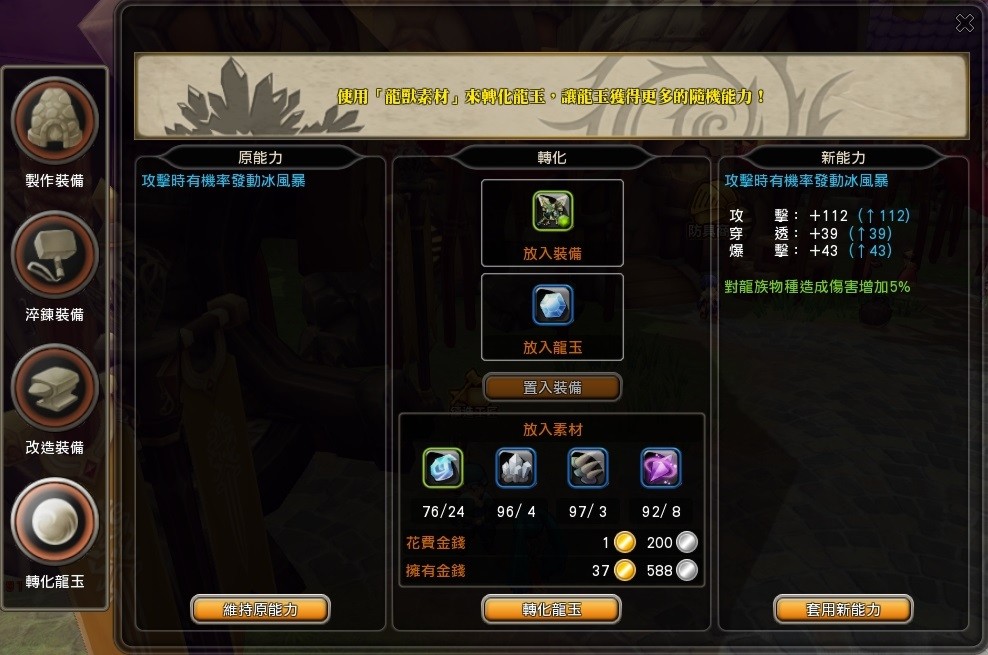 透過「轉化龍玉」可獲得新的能力