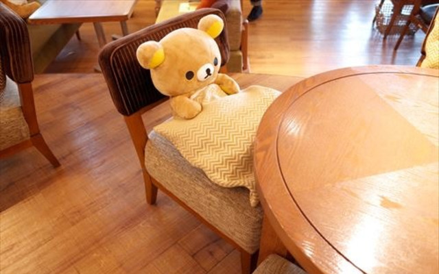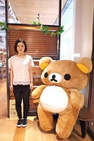 進入咖啡廳,一隻實物大小的懶懶熊娃娃被供奉在咖啡廳門口。超大!跟我們 162 公分的小編相比,它龐大的身軀一目了然。不論是寬還是高都一樣很長。這個地方是紀念照專區,讓來這間咖啡廳的人可以拍照留念。