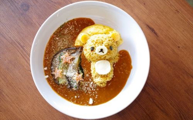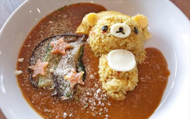 「我們在製作過程中用了一些香料,讓大人們也能享受其中。」它的確有種刺激的味道。或許對於那些喜歡咖哩有些香料的人來說,是個不錯的選擇。辣味的咖哩色米飯也刺激著胃蕾。順帶一提,懶懶熊的鼻子嘴巴那區,以及耳朵是由起司做成的,眼睛和鼻子則是由海苔做的。