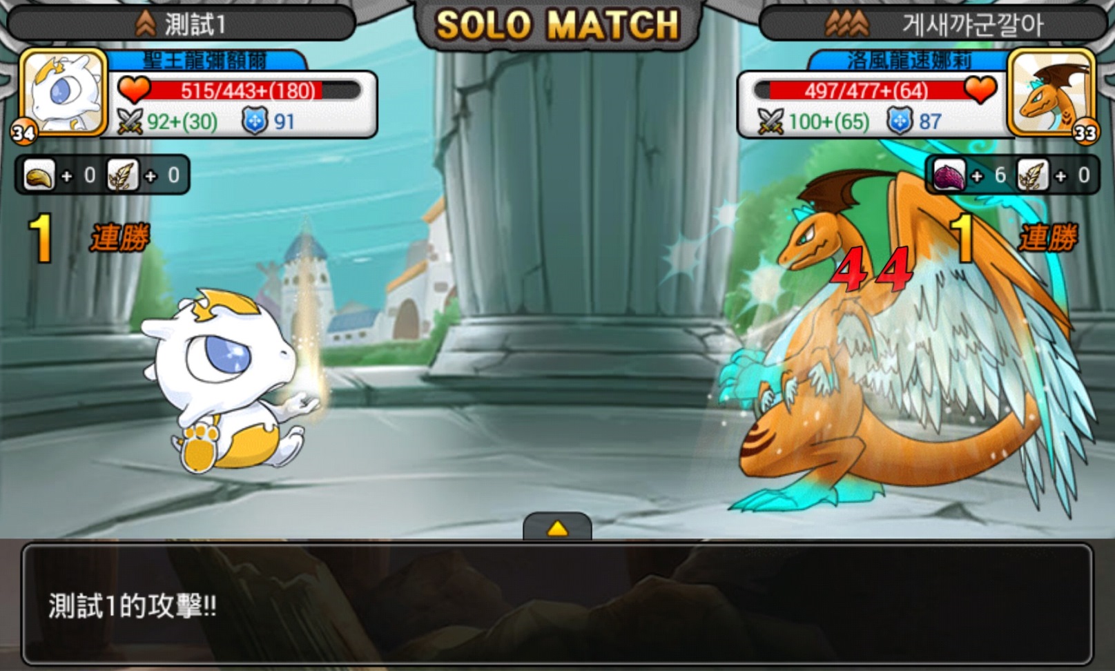 當神龍成長到一定階段時,遊戲內將會開放競技場,透過線上即時配對,可與來自不同地區的馴龍師們進行切磋,對戰採用自動戰鬥,不論勝敗皆會獲得分數,若是連勝的話分數還會有加成喔!所獲得的分數將會與各地馴龍師比較排行,每週的前幾名,還可獲得特別禮物當作獎勵。