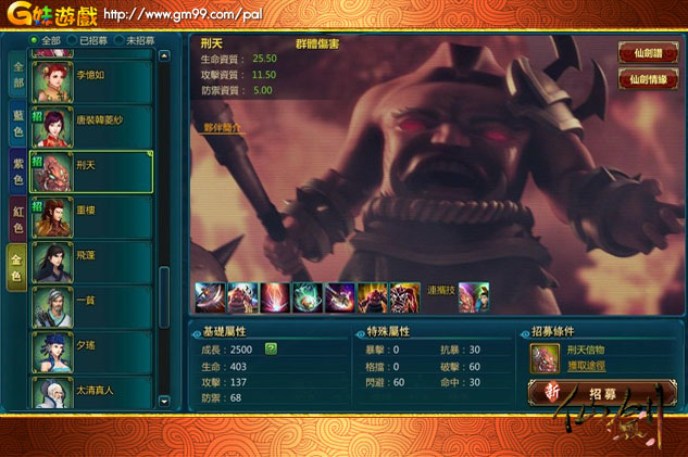 《新仙劍》新金色夥伴無頭刑天圖鑑