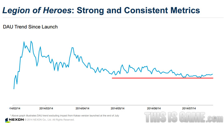 英雄軍團》的月營收為 30 億韓元的水準,前六個月帶來超過 180 億韓元的營收,而 8 月 13 日推出的 Kakao 版本的營收也常佔前 10 名,相信這股趨勢可以持續到下半年。