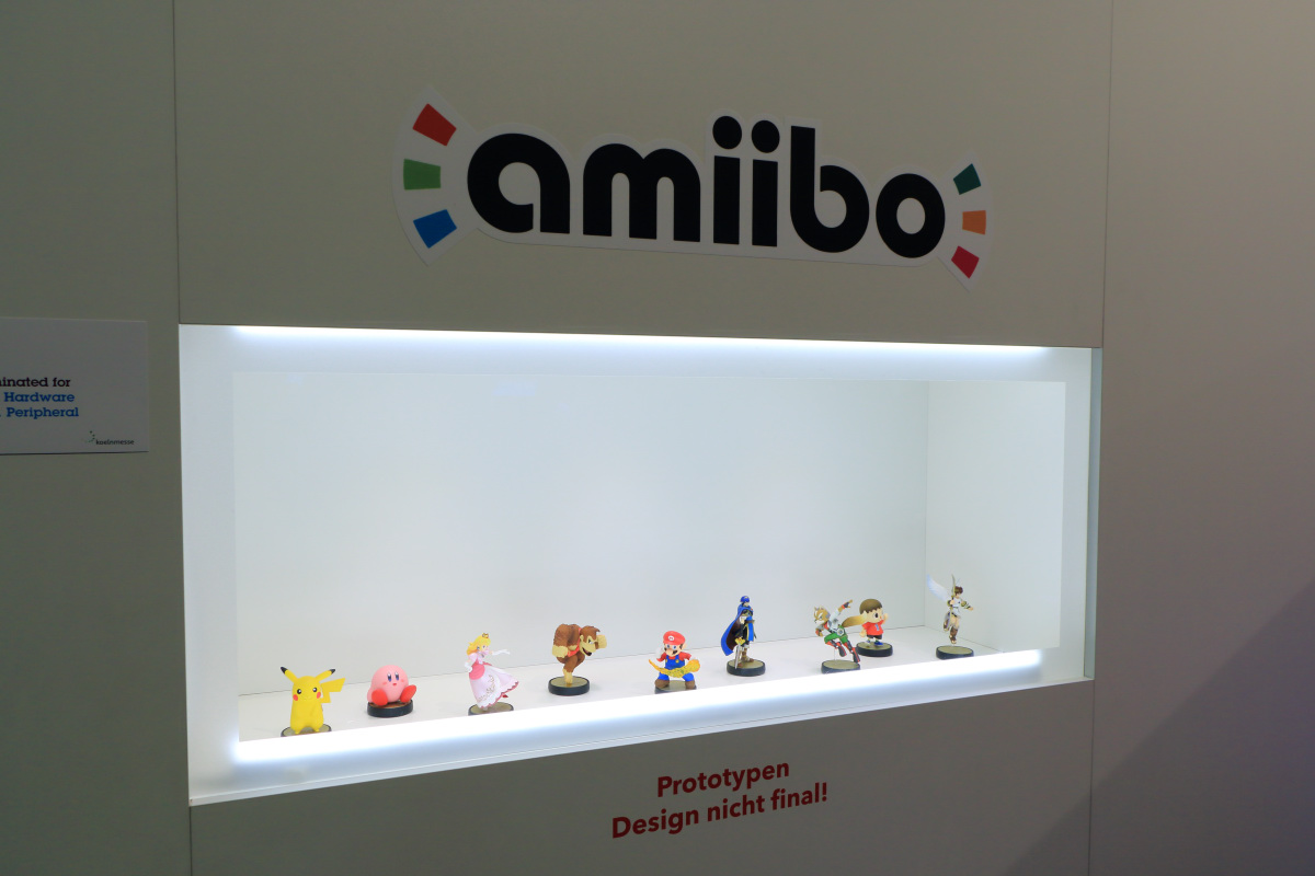 舞台旁邊展示了 E3 展發表的 NFC 人偶玩具「amiibo」,不過還不是最終設計。
