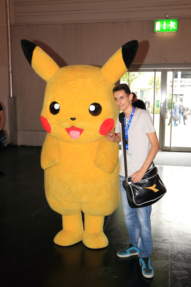 任天堂當家招牌明星的瑪利歐與皮卡丘還會不時出現在攤位四周,吸引許多參觀者合照留念。