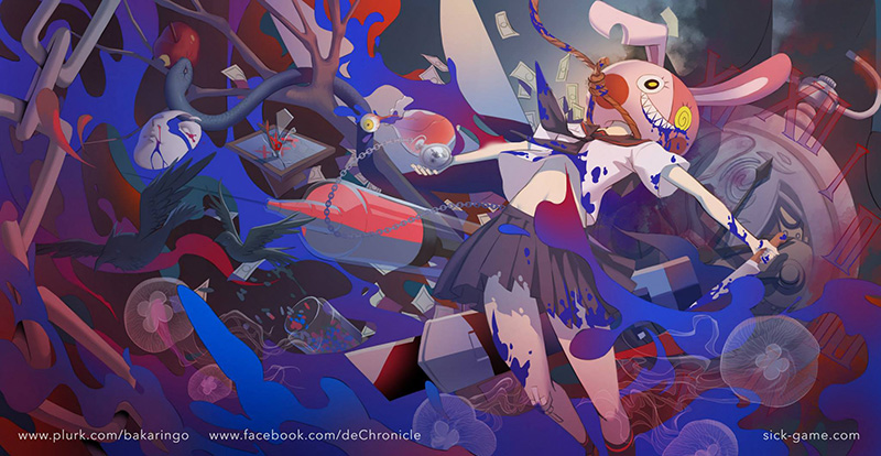 哈利菠菜:2014 年初開始到年中,這段期間創造原型的過程中,內心無法說服自己它是有趣的東西,所以沒有實際大幅度的動工,大約在今年年中的時候,我看到了《槍彈辯駁》的動畫,不看還好,一看驚為天人,因為那只黑白熊就是活脫脫有病測驗裡,我所設定的那個有病的傢伙!!