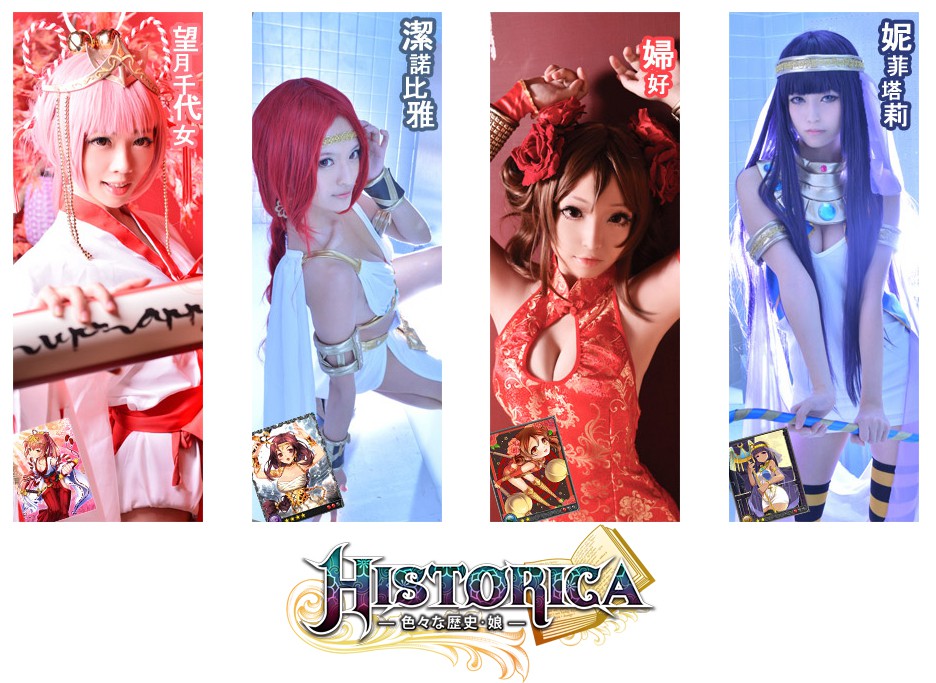 Historica》「愛上歷史娘 愛的二部曲 」幸運女神總選舉於上周開跑,官方精選代表東西方的四大萌魅天后,邀請玩家票選出最強人氣歷史娘女神,玩家將有機會獨得女神抽出的豪華機票!精彩活動特邀網路超夯 Coser 真人扮演東西方四大歷史娘女神:美艷女神「埃及女王-潔諾比雅」、萌系女神「日本巫女-望月千代女」、魅惑女神「殷商王后-婦好」、精靈女神「阿蒙神神后-妮菲塔莉」,天后對尬引爆戰火,活動開始後吸引大批玩家搶進網站投票,各具特色的女神使得戰況極劇激烈,尤其精靈女神「妮菲塔莉」和魅惑女神「婦好」兩大天后得票數持續陷入拉鋸戰,而暫居第三、第四名的萌系女神「望月千代女」、美艷女神「潔諾比雅」,也不落人後,特地拍攝催票影片,請玩家幫她們加油喔! 喜愛歷史娘女神的玩家除了投下神聖一票更可以進入遊戲感受女神的淨化威力。