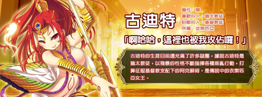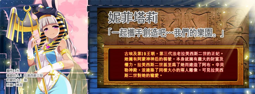 Historica》精選全世界五大洲的歷史娘展開穿越時空淨化之旅,世界風萌女各具特色,其中以狂野魅力著稱的莫過於非洲歷史娘,來自衣索匹亞的女王「古迪特」和法老拉美西斯二世最寵愛的王妃「妮菲塔莉」,兩大歷史娘以其豔冠群芳的美貌和強大的戰鬥實力寫下王國歷史輝煌的一頁,官方今日將為玩家揭開非洲歷史娘的神秘面紗。