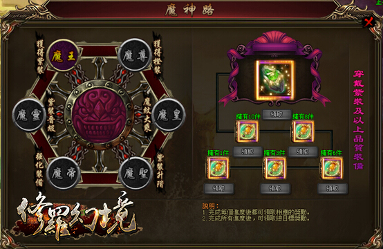 魔神路系統介紹,此系統中設置了「魔王、魔靈、魔帝、魔聖、魔皇、魔尊」共六個階段。