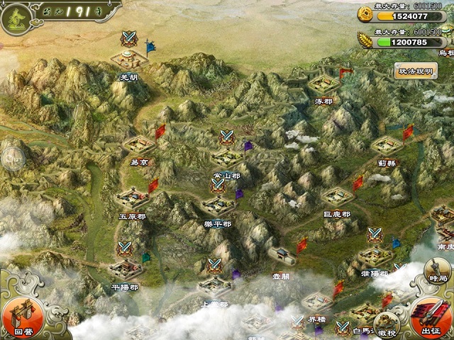 九州地圖氣勢磅礴,歷史事件即時觸發!在遊戲「一統天下」系統中,玩家將與多達 20 餘個勢力爭霸天下。不同勢力攻防實力不同,城池難度、所屬武將也各有千秋。多達 120 多座經過精心佈置的城池,玩家只有發揮最強戰力方可攻下!