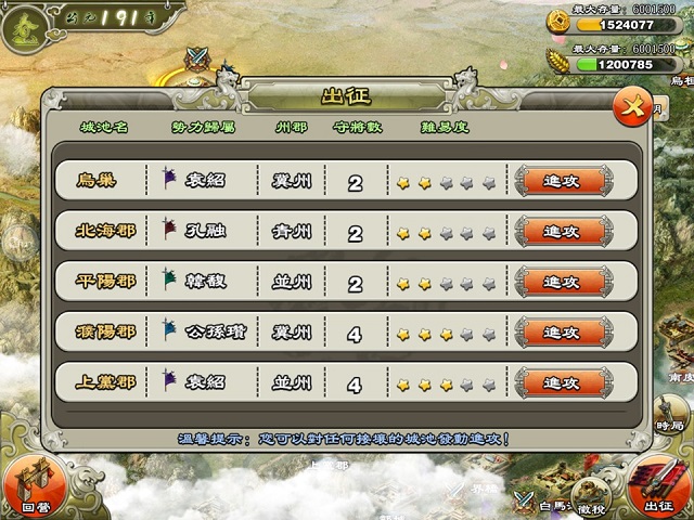 名將爭霸》遊戲,完成兵種訓練、任命武將之後,就可以加入「攻城掠地」的行列!在戰鬥中不但可以獲取到可觀的資源進賬,還可以獲得武將經驗提升武將等級,兩全其美!在此提醒各位玩家,在掠奪他人資源的同時千萬不要忘記壯大城池防禦!這樣才能保住好不容易掠奪來的資源!此外,玩家可對戰鬥中未陣亡的士兵進行回收,大大提高了遊戲戰鬥的緊湊程度。