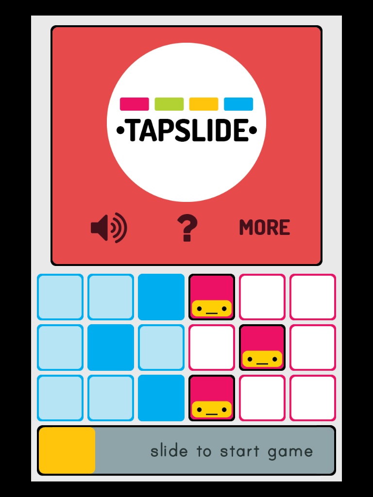 Tapslide》雖然是個全年齡向的遊戲,遊戲風格也很卡通,不過難度卻相當高,不僅要能迅速反應點出完全相反的圖,此外準確度也很重要,常常緊張起來就是點不到要點的方塊。遊戲雖然單純,黏性卻很高,讓人不服輸的想要一再挑戰自己的最高分數。