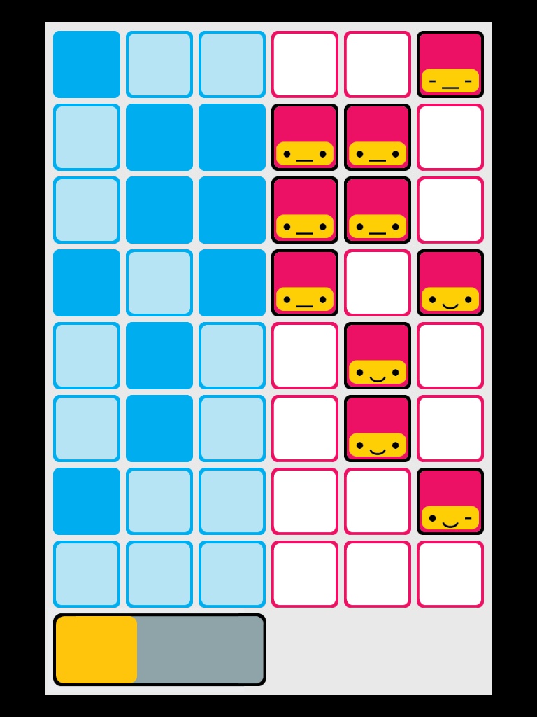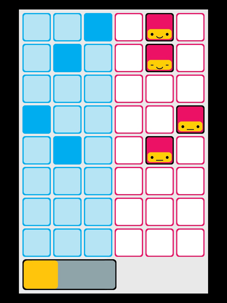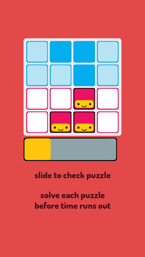 遊戲的玩法相當簡單,玩家們只需要在 6X4 的畫面空白處點出跟另一面有顏色的區域完全相反的圖形,而完成之後滑動下方的計時條就能前往下一個謎題。