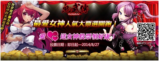 鬼武傳」女神投票,贏取遊戲內的豐厚獎勵吧!