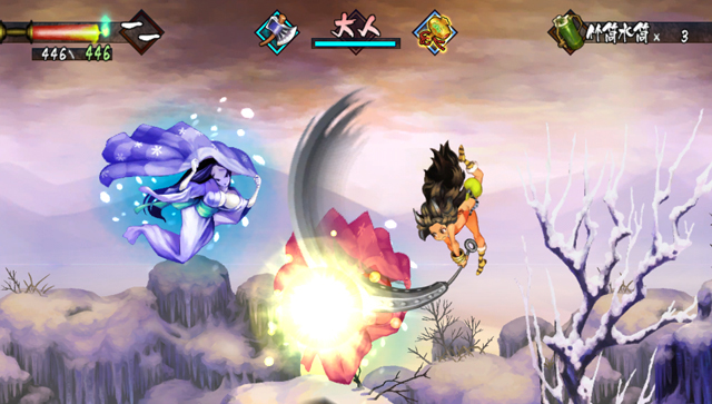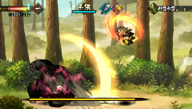 「小孩」的空中落下攻擊等部分攻擊只要連續命中的話就會進入纏繞著紅色氣場的強力「狂化攻撃」!可增加攻擊次數也能用火柱給予致命一擊。