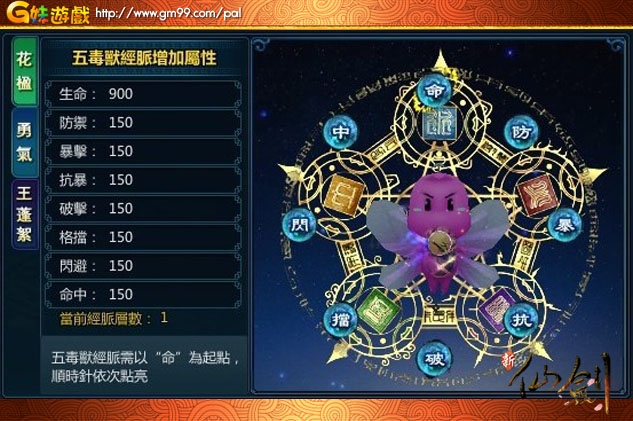 啟動五毒獸點亮經脈可獲取到相應屬性加成