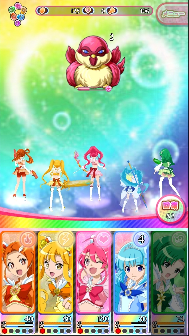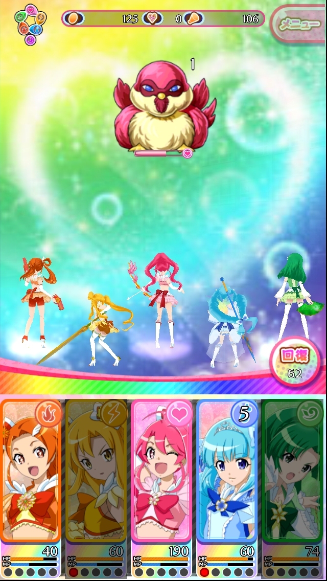 在與敵人的戰鬥中,除了會用遊戲中的影片來描繪變身跟必殺技場面之外,少女們的感情表現也會以特寫的手法來演出,對於服裝變更方面也灌注了很多的心力。戰鬥方式很簡單,只需透過連續觸碰來讓攻擊連接起來即可給予敵人大量損傷。
