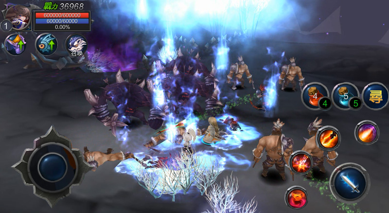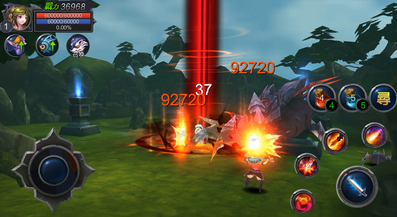 「氣沖山河」:狂戰士的必殺技,躍起後對地面憤怒一擊,發出一道衝天氣柱,
