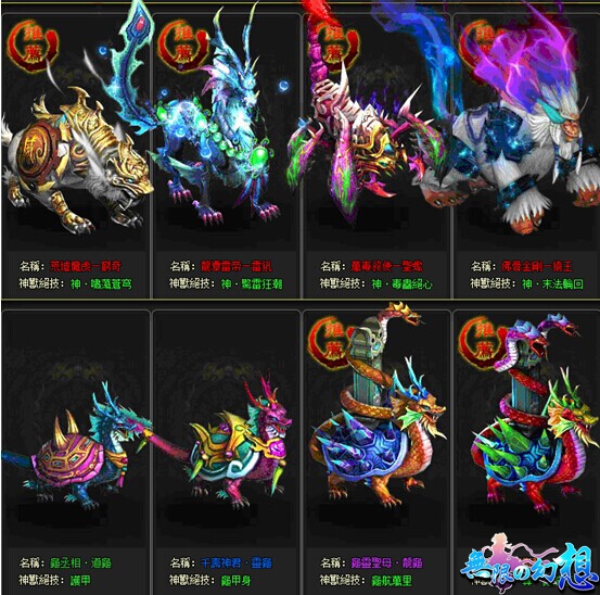 無限的幻想》的世界中,有許許多多的強力神獸,只要你有足夠的實力便可駕馭它們。神獸作為遊戲中重要的戰鬥夥伴,每個神獸都有自己獨有的戰鬥技能,最多可出戰 3 個神獸,同時可對神獸進行技能升階和光環強化培養,大幅度提升隊伍戰力。