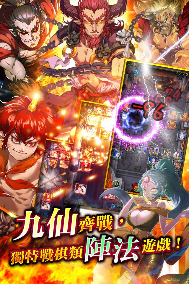 本遊戲的戰鬥方式為九宮格類型,玩家僅需要在「佈陣」中安排各種不同類型的角色在適當的位置上即可。一般情況下,左上方通常是首要被攻擊的目標,因此可以安排生命值較高的仙人,後方可以擺放遠程攻擊且攻擊力強的仙人。而在遊戲主畫面方面,開發團隊也配合手機的操作方式,在遊戲介面上設計的相對簡便,卻又保留了戰棋類遊戲的重要元素。
