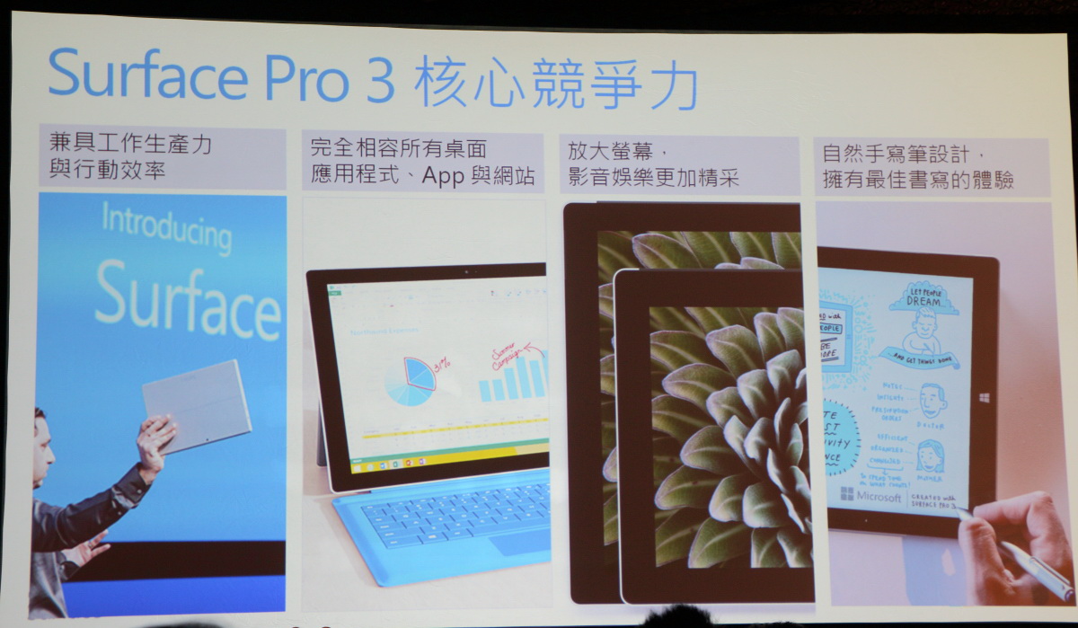 他表示,微軟不斷思考如何讓 Surface Pro 3 完美取代筆電,將一台筆電所具備強大效能與功能,濃縮進一個極致輕薄的機身當中,只要拿著一台Surface Pro 3,就可以滿足工作、學業、娛樂休閒的一切需求。