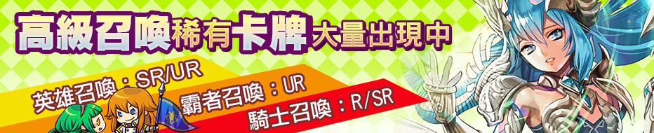 高級召喚出現卡牌內容升級!騎士召喚調整為:R/SR、英雄召喚調整為 SR/UR、霸者召喚調整為 UR。