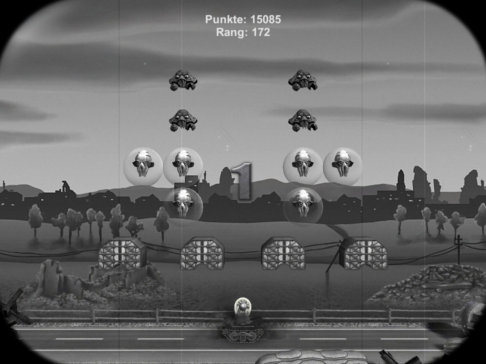 如果只有敵人會不斷變強也太不公平了,好在隨著關卡的推進,玩家的子彈射速也會越來越快,還會多出跟宇宙侵略者那款遊戲一樣的防護牆,抵擋外星人的子彈攻擊,就算是飛碟丟出來的飛彈也照樣擋住,可是要注意,每被打一次防護牆就會出現越多缺口,被打太多次整片防護牆就會不見呢。
