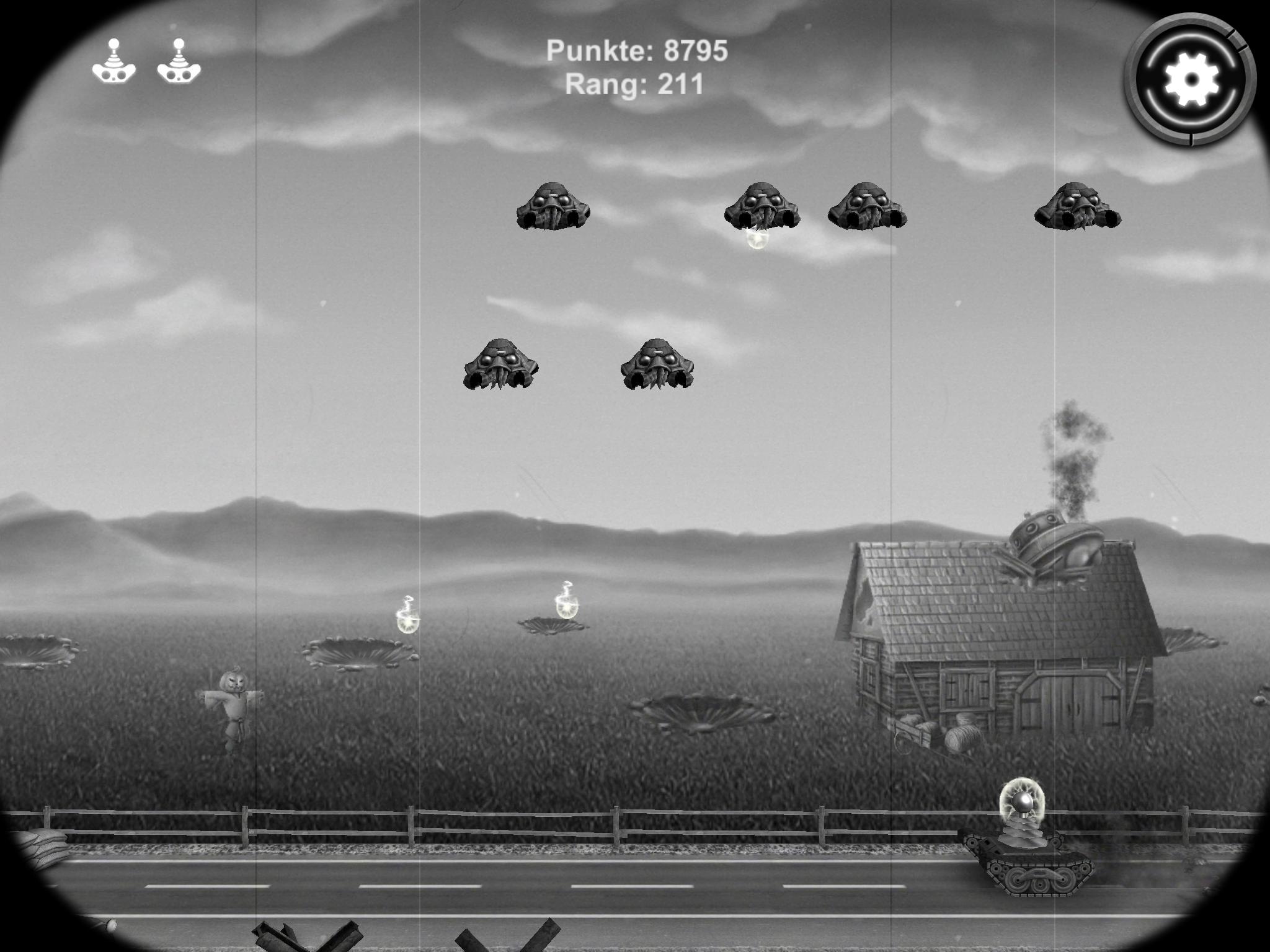 玩家們只要按著畫面左下角或是右下角就能移動,按著畫面上方就能射擊,但是筆者認為預設的操作法不太好用,建議玩家們可以至設定改成用陀螺儀來移動砲台,如此一來按著畫面各個位置都是射擊喔!