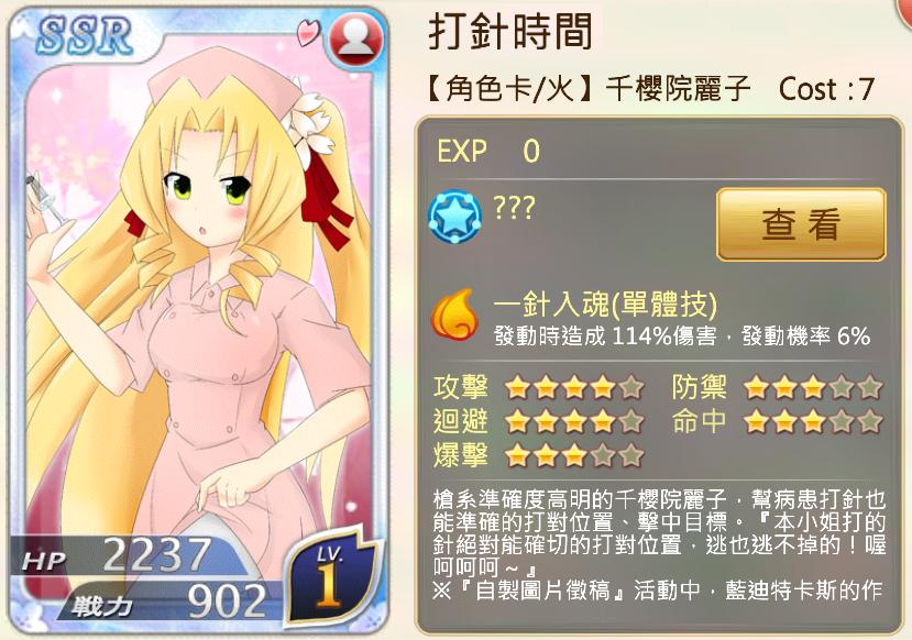 槍系準確度高明的千櫻院麗子,幫病患打針也能準確的打對位置、擊中目標。