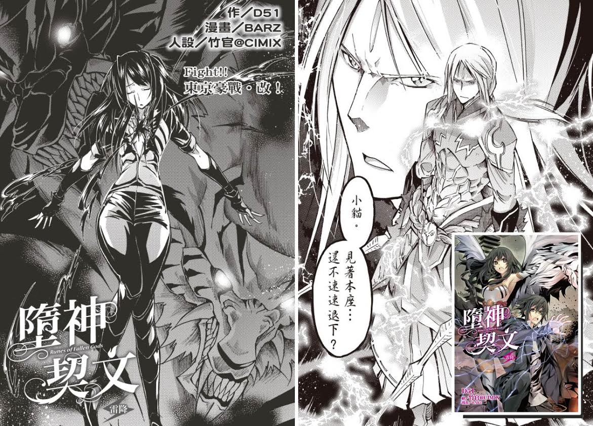 首發四本新刊《墮神契文》、《世界重組》、《夜刃》、《食夢之鑰》,分別邀請到 BARZ、葉志楓、林芷蔚、芽鳩四位漫畫家繪製漫畫版。以熱血英雄漫畫《-鎮邪甲冑-劍獅》受到支持的 BARZ 老師將全書高潮的「東京豪戰」改編成魄力十足的戰鬥漫畫。將原作小說的華麗感更為提升、也表現出不同的作品魅力,BARZ 老師表示畫這場畫面絢爛的大戰很辛苦,卻也有許多對於自身畫技的收穫,希望更多讀者藉由他揮灑熱血的漫畫愛上這部《墮神契文》。