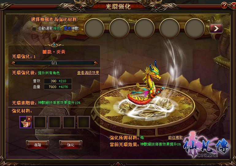 威武霸氣的神獸可不是只能用來觀賞的,神獸系統可以給玩家增加相應的屬性,等階越高的神獸給修仙者加的戰鬥力和自身屬性也相應的越高。不同品種的神獸擁有的絕技、天賦也各不一樣,防禦、攻擊、暴擊等可以根據修仙者的不同需要選擇培養相應的神獸。