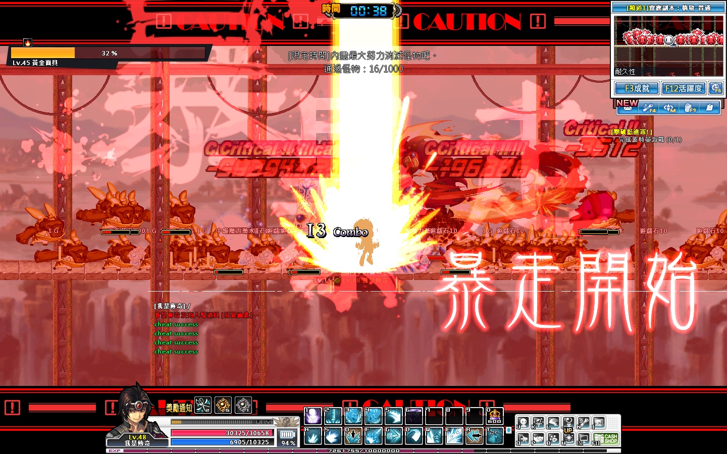 《全員連擊中》是一款 2D 橫向卷軸 ARPG 遊戲,玩家將運用方向鍵、跳躍等進行,並搭配簡單操作攻擊與方向鍵,進行戰鬥。遊戲主要模式為扣除疲勞度通過關卡進行任務,玩家在進行關卡時,可透過攻擊怪物累計憤怒值,當憤怒值達臨界後可進入增加人物屬性的暴走狀態,同時還可以施放不同階段的暴走技能。