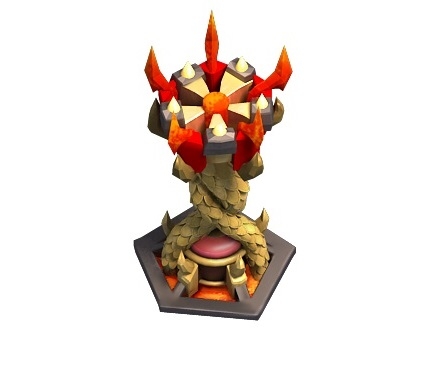 聖炎塔的靈感來源於巫祝的火球術,大師們通過複雜的工藝將其改造成可以自動攻擊的防禦設施。
