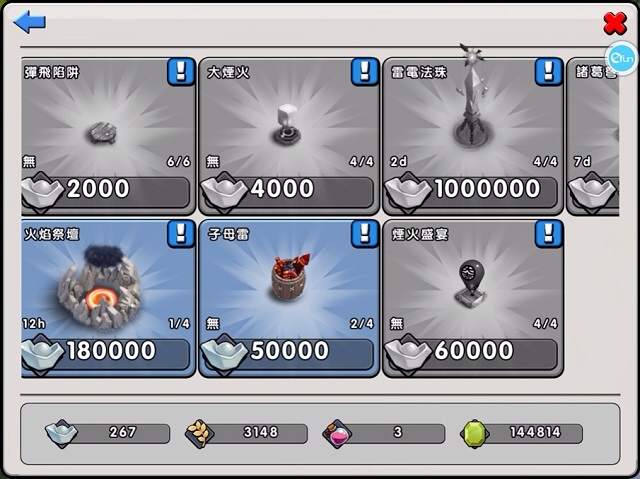 ①新陷阱初級目標:2 個 2 級大煙火、4 個 3 級地雷、2 個 2 級彈飛陷阱
