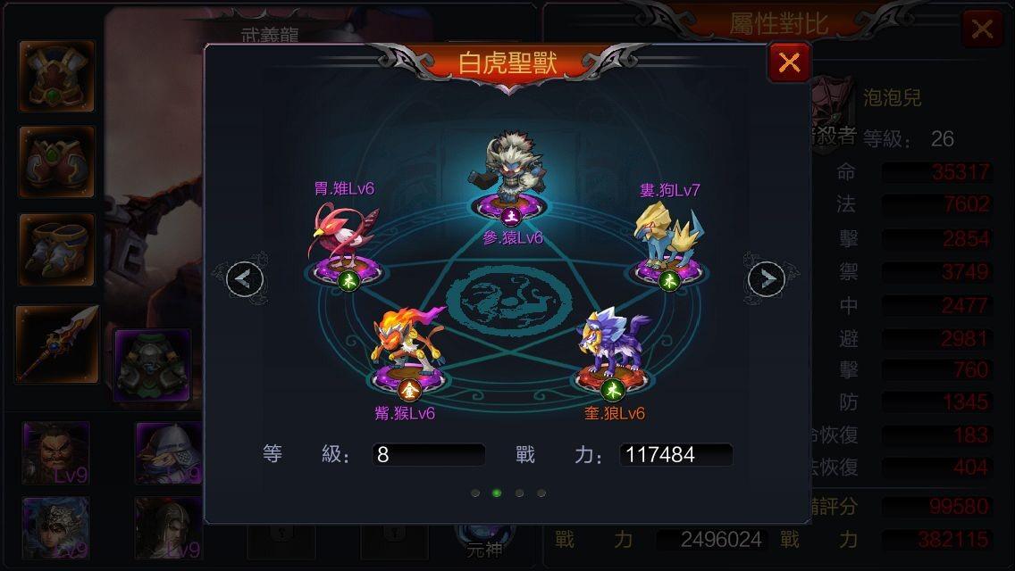 玩家們在「星宿」系統中挑選聖獸後,將糜下的幻化精靈裝備於五星陣中,玩家便可獲得來自該聖獸精靈的庇護力量並加強自身屬性;其中白虎精靈和青龍精靈的屬性是全額疊加的,例如在裝備白虎精靈後,玩家們的屬性將獲得再次的提升。想提高戰力的玩家們,在享受酣暢淋漓副本闖關的同時,遠古精靈正蠢蠢欲動等待各勇者的召喚!