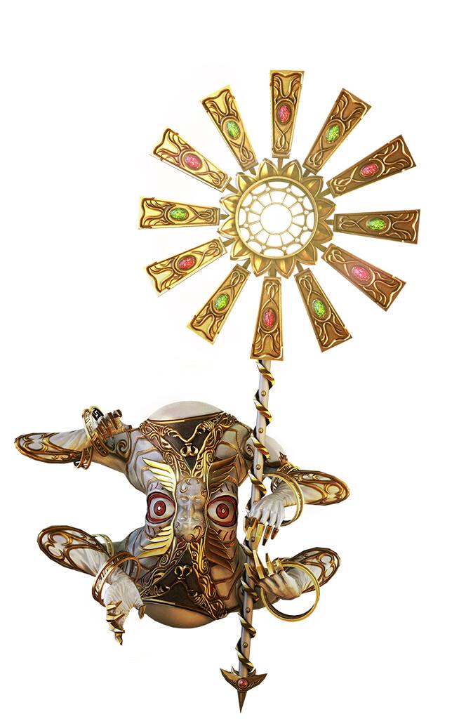 使用過去有一位男子因詛咒、而讓自己也變為醜陋的蟲子的人而製作出的魔導器。牠被組合為弓的一部分直到現在仍存活著,伴隨著詛咒放出強力的毒液、持續汙染著弓箭。