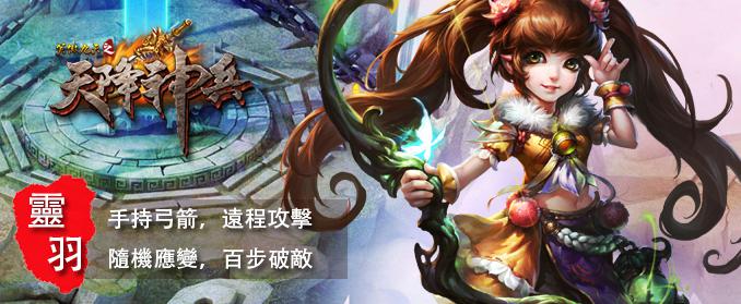 女性,手持弓箭,遠程攻擊,擅長單攻,對敵手段豐富,聰敏靈活,隨機應變。類似其他遊戲中的弓箭手。可以在百步之外對敵人造成傷害,相對而言靈羽的靈活性更高,生存能力更強,但是她同樣缺少群體傷害能力,在生命值和血量值方面也不高。