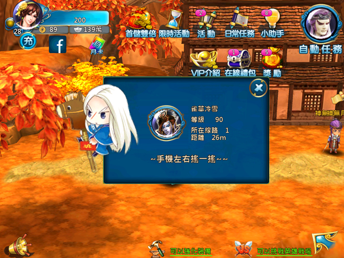 霹靂神州》行動版讓你不無聊!只要輕鬆搖一搖,就能找到你周圍的其他玩家一同作戰與結識新戰友,且通過搖一搖系統可以輕鬆的看到周圍玩家的各種資訊,並可進行送花、郵件等各種玩家間的交流,讓遊戲過程不再孤單。