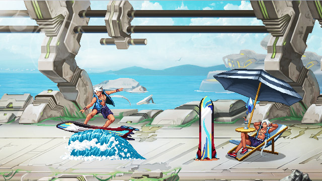 換上夏日時裝的冰魄一改以往冷峻形象,健康的小麥膚色、清涼的沙灘褲、露肌的背心以及熟練的衝浪技巧,完美變身鄰家陽光大男孩。安靜的躺在沙灘椅上享受午後美好陽光,在安全區擁有這樣的舒適真是羨煞旁人,而踩在衝浪板上迎浪而上的行走設計,將他陽光帥氣的特點展露無遺!