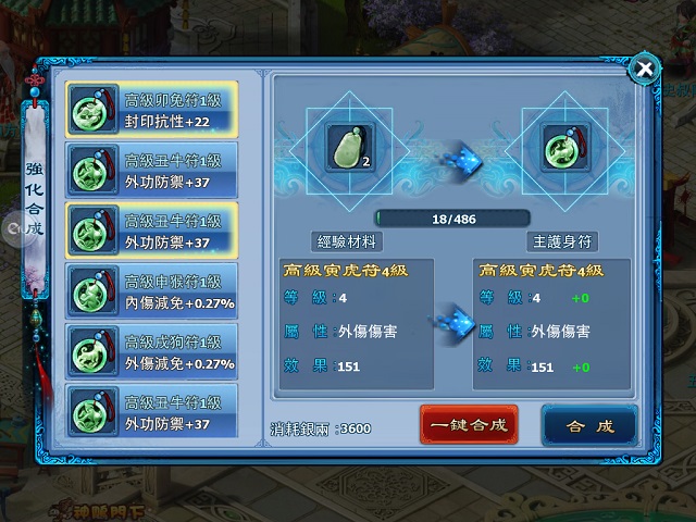 寵物護符通過合成其他的寵物護符來獲得經驗升級,最高可以升到12級。當高級護符提升到7級時,還能獲得一個獨特的雕紋!當寵物佩戴有兩個或以上擁有相同雕紋的高級護符時即可啟動雕紋效果!強大的力量將為玩家戰局勝算加分!強悍的寵物可以為玩家增添不少戰力!目前獲得護符的途徑一共有三種:俠肝義膽、神秘商店和限時搶購。