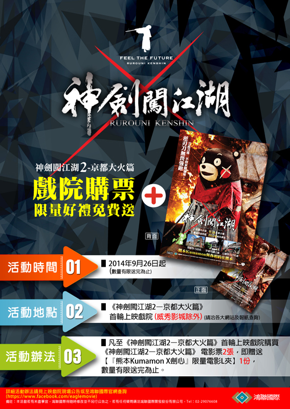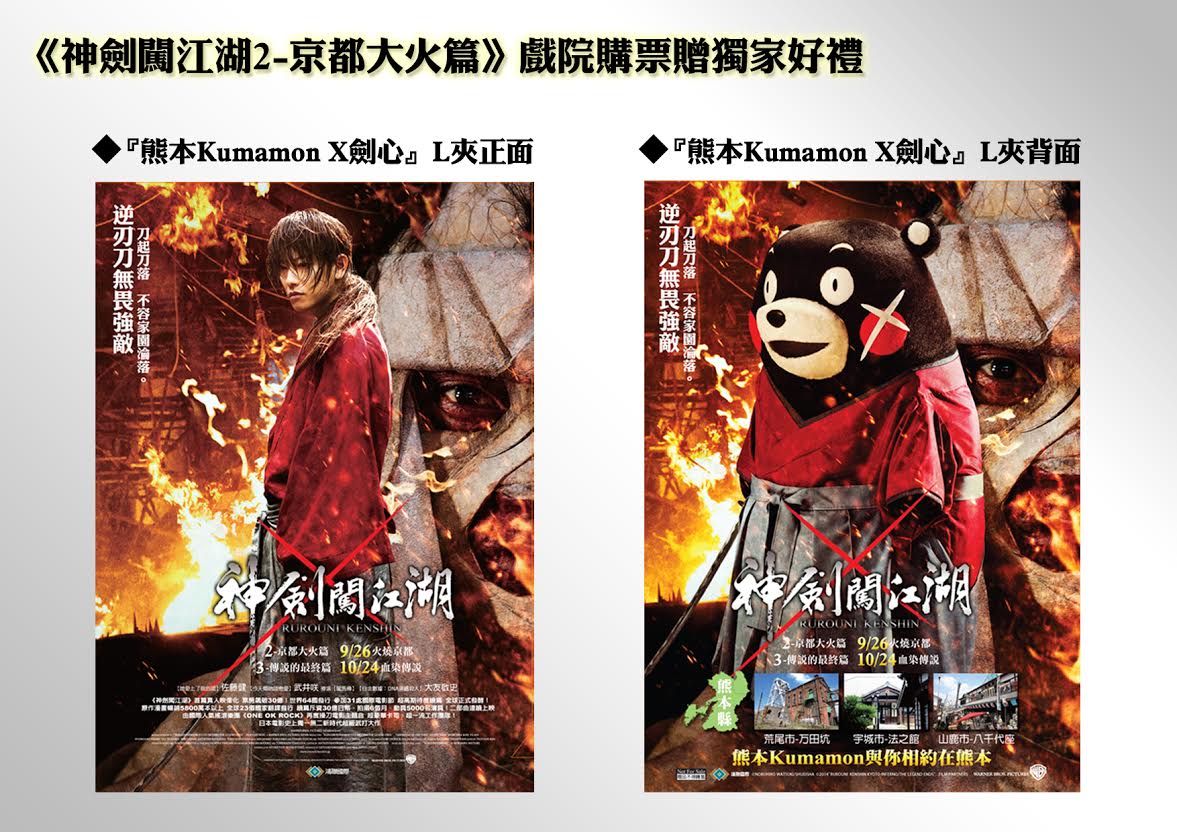 2張就送獨家精美好禮【『熊本Kumamon X劍心』限量電影L夾一份】,數量有限,送完為止,