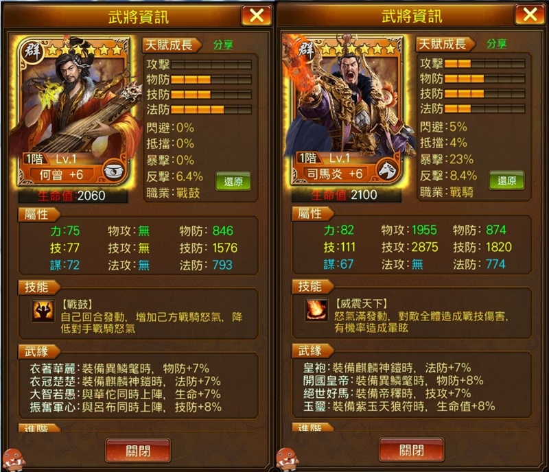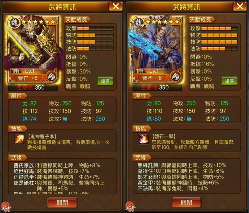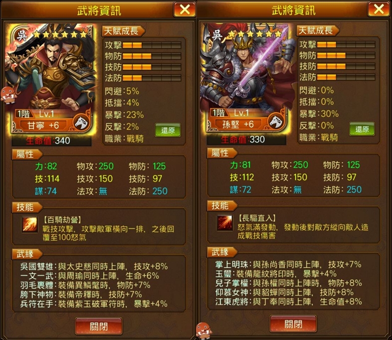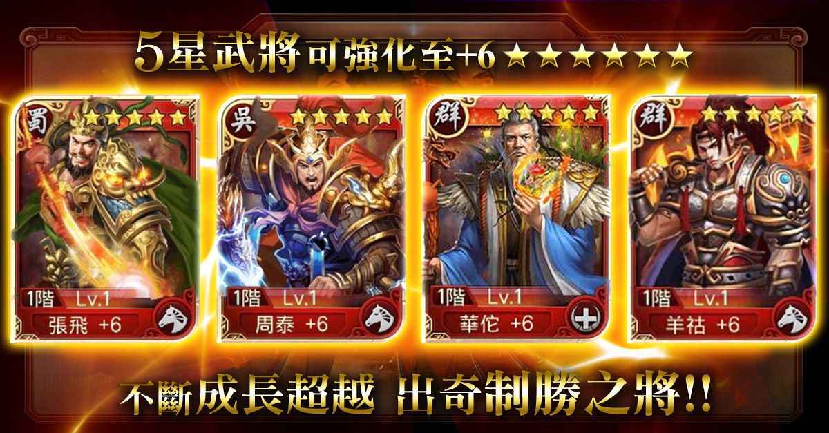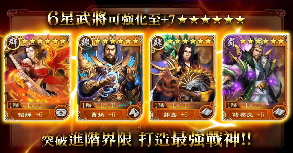 大家都有體會武將培養的方式的不同,會造成同樣的武將實力也有天差地別!比方說想將呂布進階到【+4】需要耗費 1 張武將卡,但呂布卡十分難得,但如果將「進階丹」、武將卡投資在一名五星武將上讓他升至【+6】,則有可能比【+3】呂布更強!至於箇中選擇則留給玩家自己去取捨!
