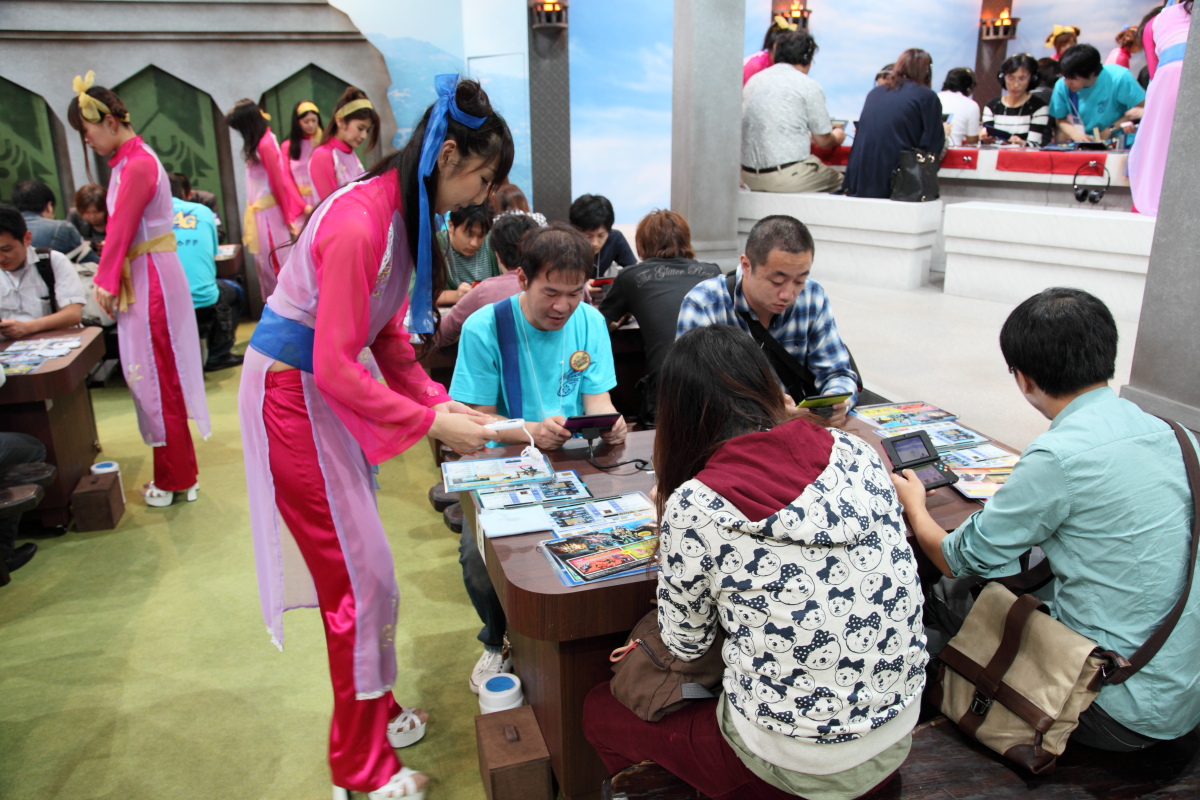 而在試玩區內部,是以本作收錄的新城鎮為主題布置擺設,並且全球首度可以實際試玩到任天堂的最新版本主機「New 3DS」。而關於《