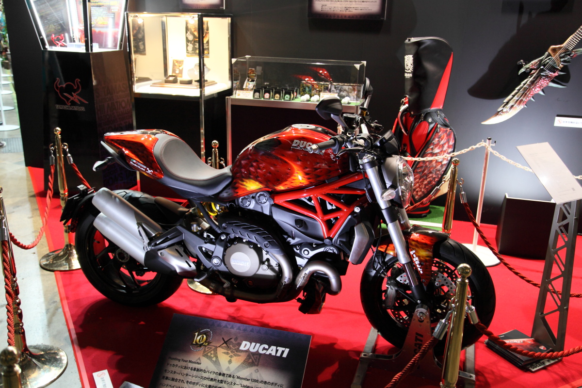》相關的合作商品,其中包含了皮外套、電吉他、高爾夫球具甚至是和機車製造商合作的「重型機車」,來供結束試玩的獵人參觀。