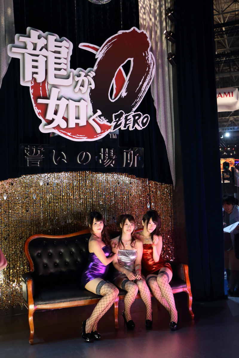人中之龍 0 誓言的場所》的劇院,緊鄰招牌女郎攝影區的是現場節目的攝影棚。遊戲試玩區主要安排在攤位內部後側,攤位右側是其他幾款主力作的 Cosplay 攝影區,右側後方則是合作廠商遊戲試玩。