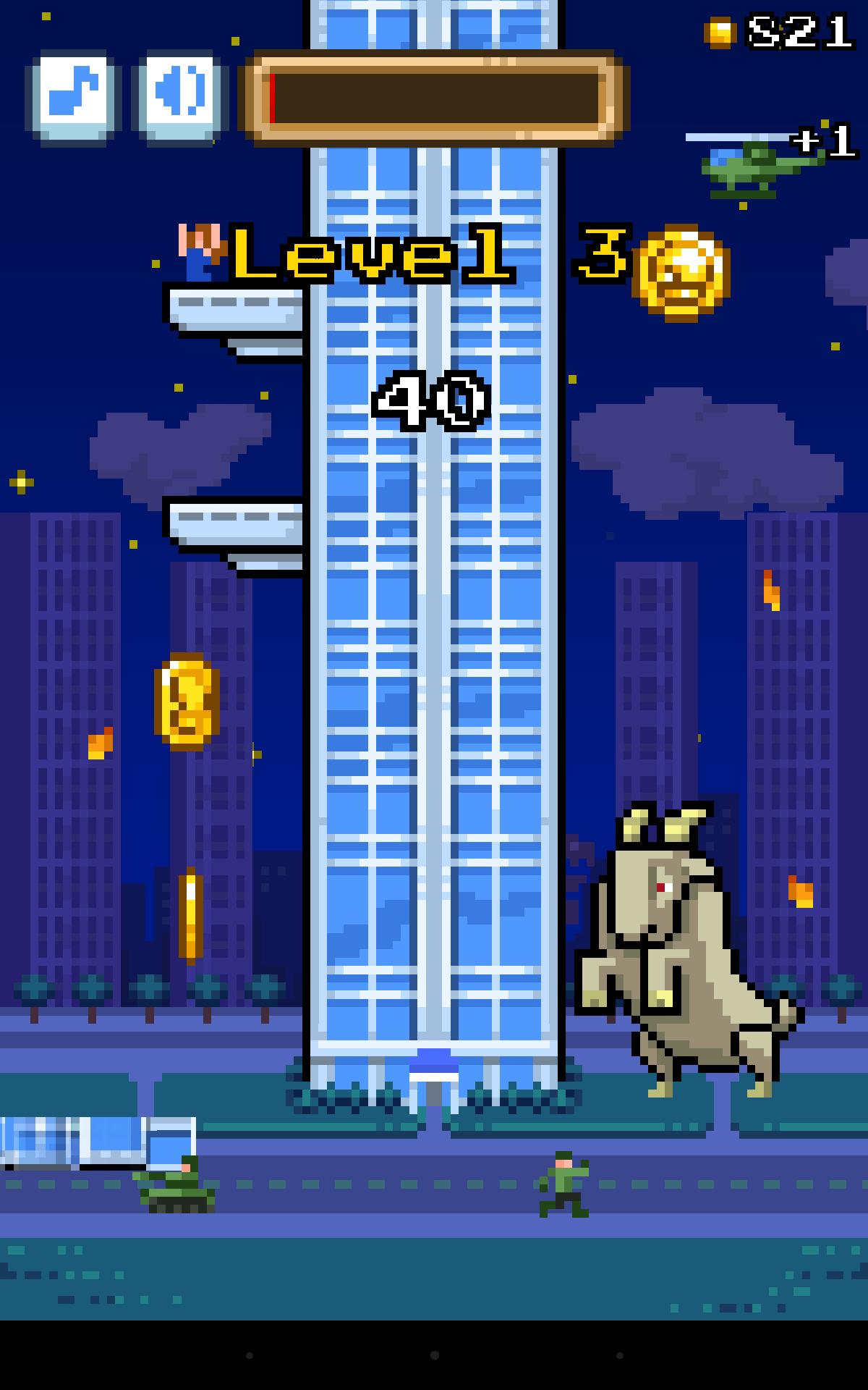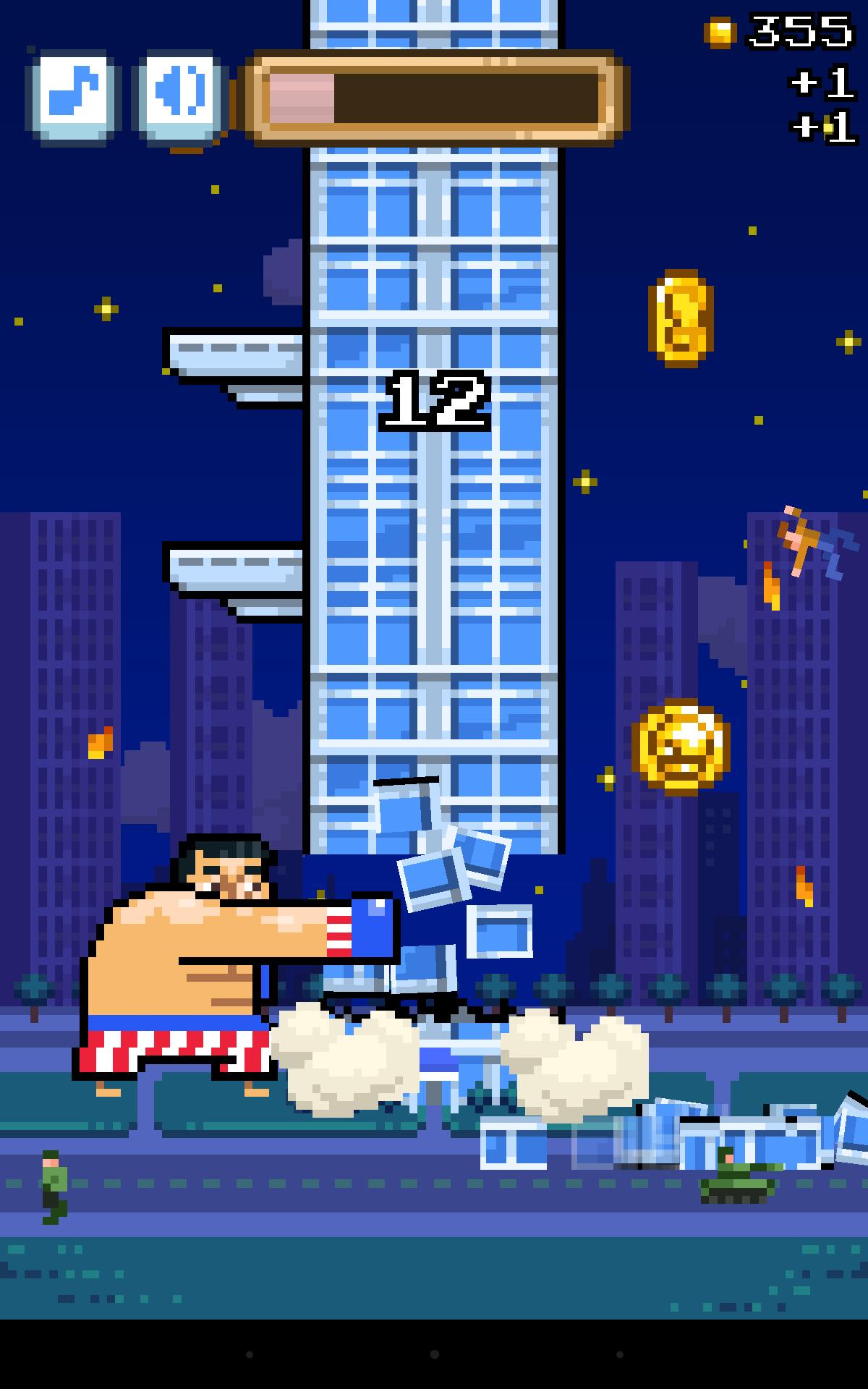 在遊戲中玩家的目的就只有一個,那就是看玩家能夠破壞幾個樓層而已。但因為在破壞的途中也必須小心閃避陽台或看板等障礙物的關係,所以也很考驗玩家的反應力。