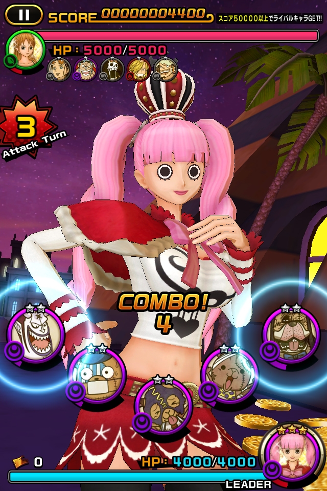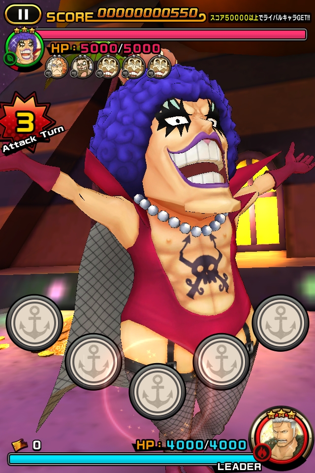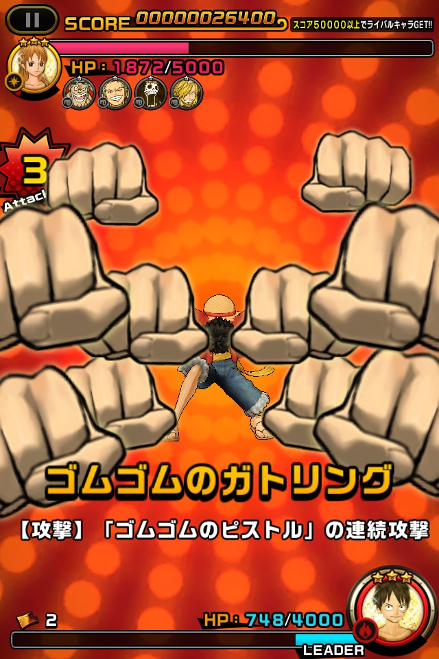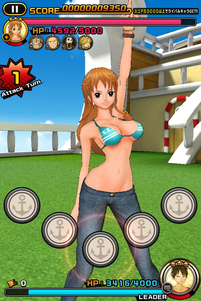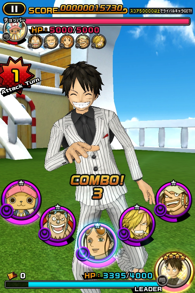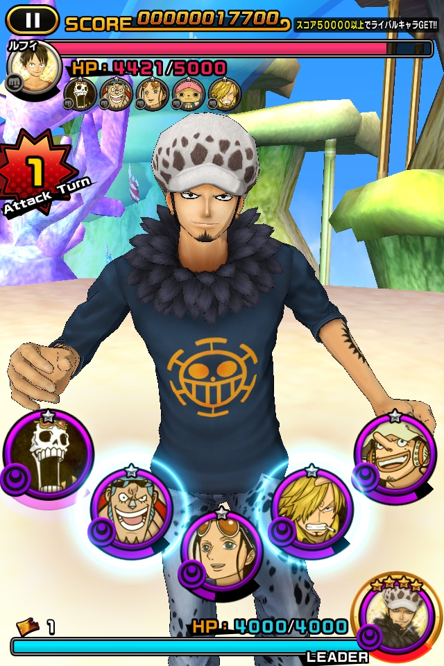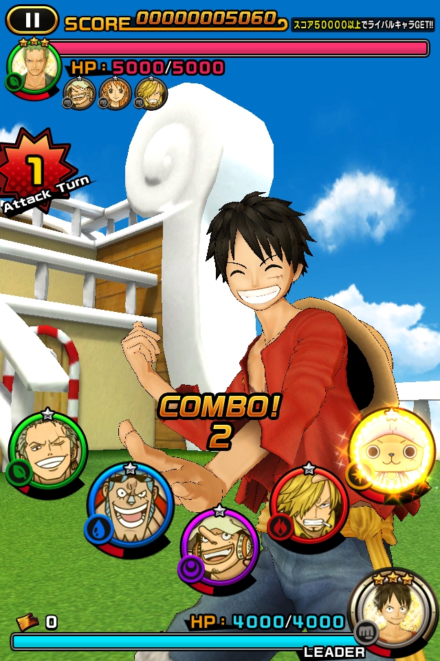 航海王》人氣角色來進行舞蹈戰鬥的音樂節奏遊戲,只要配合音樂觸碰畫面即可觀看到魯夫等人施展華麗的舞蹈。