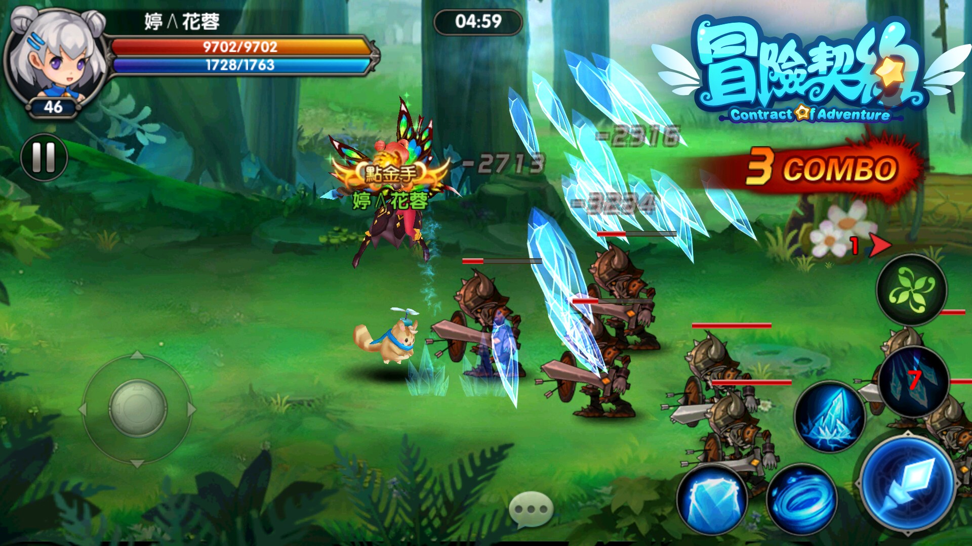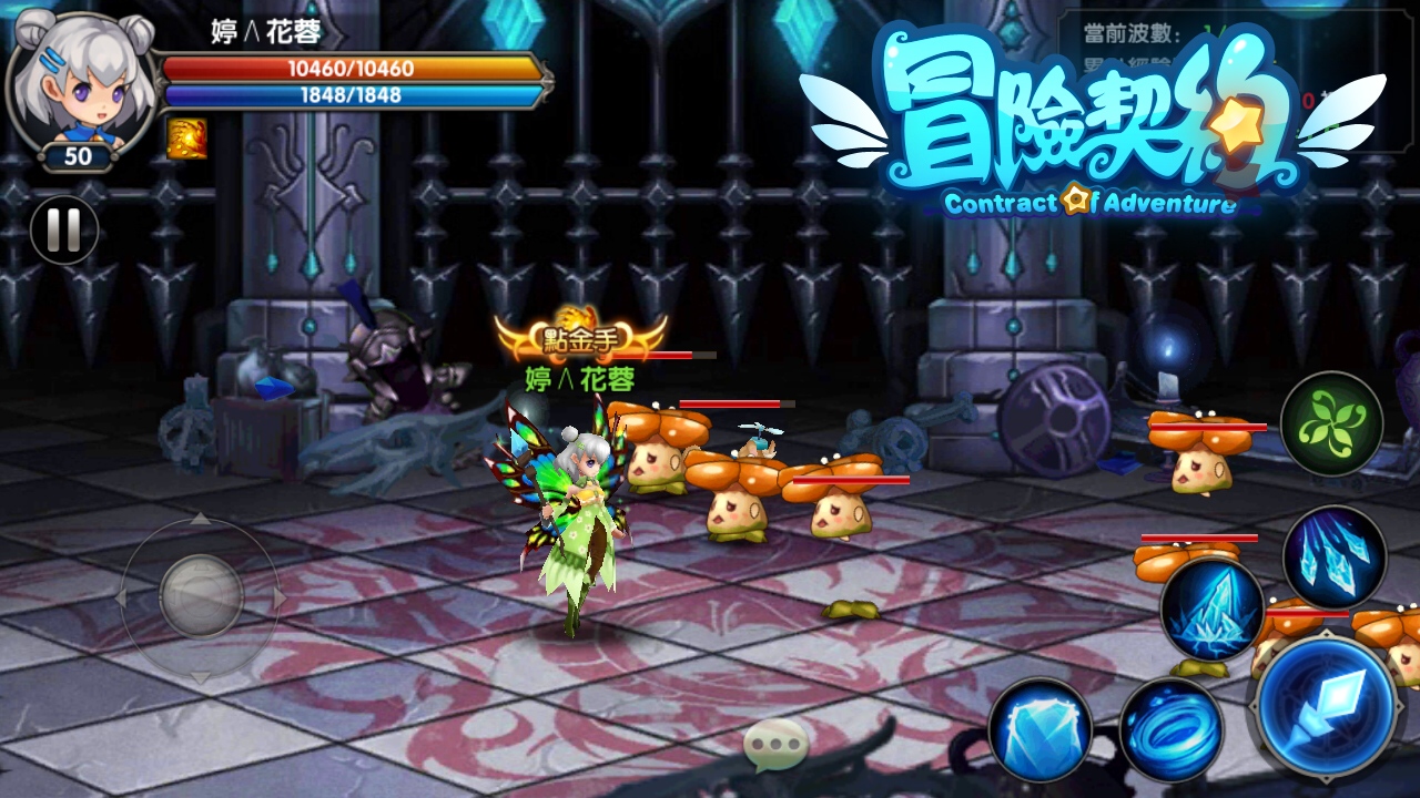 冒險契約》其華麗的打擊系統是主要特色之一,採用了橫版操作的戰鬥系統,配合螢幕震動,絢麗特效的聲光效果。讓玩家體驗到殺怪的痛快打擊感,同時主角、怪物都帶著可愛氣息,各位勇者可不要打不下手哦!