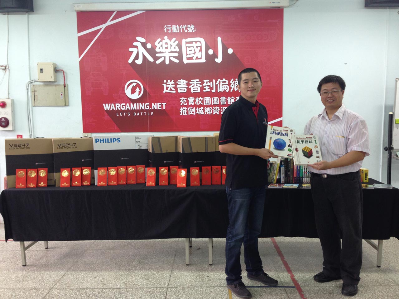 Wargaming 今(24)日帶著百餘本來自社群的愛心捐書,與由 Wargaming 台灣辦公室加碼捐助的桌上型電腦、螢幕,以及鼓勵校內清寒學童的獎學金前進宜蘭永樂國小,為這個地處偏遠、缺乏資源,全校六個年級相加僅 76 名學生的迷你小學,充實校園圖書館館藏、添設桌上型電腦,並且頒發清寒獎助學金。